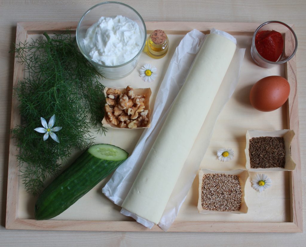 1. Alle benötigten Utensilien und Zutaten – bis auf den Blätterteig – bereitstellen.