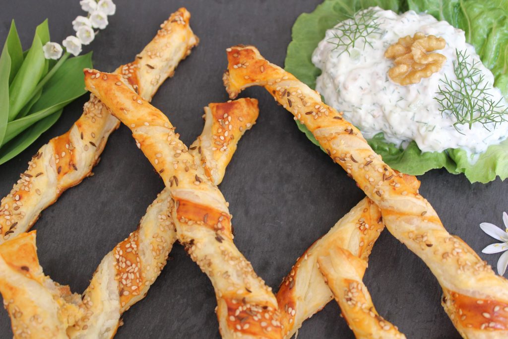 Rezept für Sesamstangen mit herzhaftem Skyr-Dip