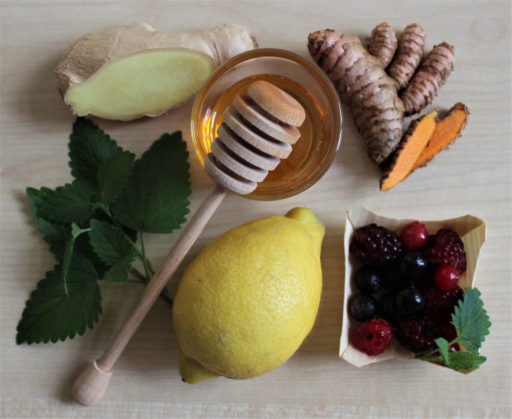Die frische Kurkuma verleiht dem Ingwer-Kurkuma Wunder seine unvergleichliche Farbe. Die Zitronenschale und das darin enthaltene ätherische Öl sorgen für sein unglaubliches Aroma. Die saftigen Beeren und die Zitronenmelisse tragen zum herrlich frischen Geschmack bei.